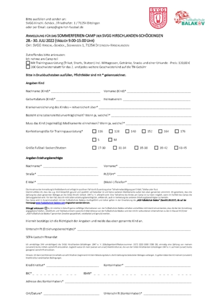 Sommerferien-Camp 2022 - SVGG Hirschlanden-Schöckingen Fußball